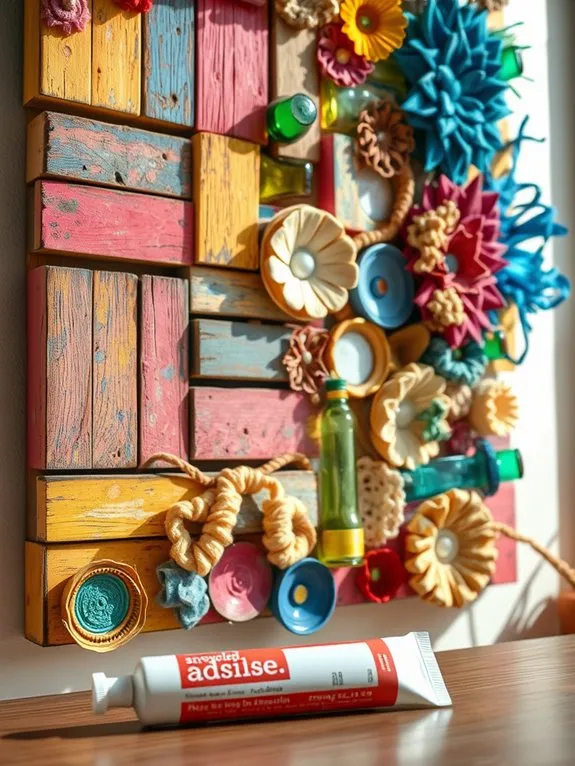 - Rassemblez divers matériaux recyclés comme du carton, des bouteilles en verre et des boîtes à œufs pour créer des textures et des formes uniques pour votre décoration murale.