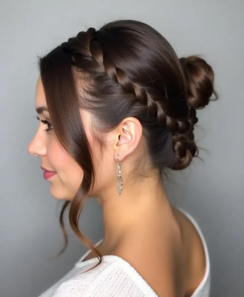 - Deux tresses plates menant à un chignon haut