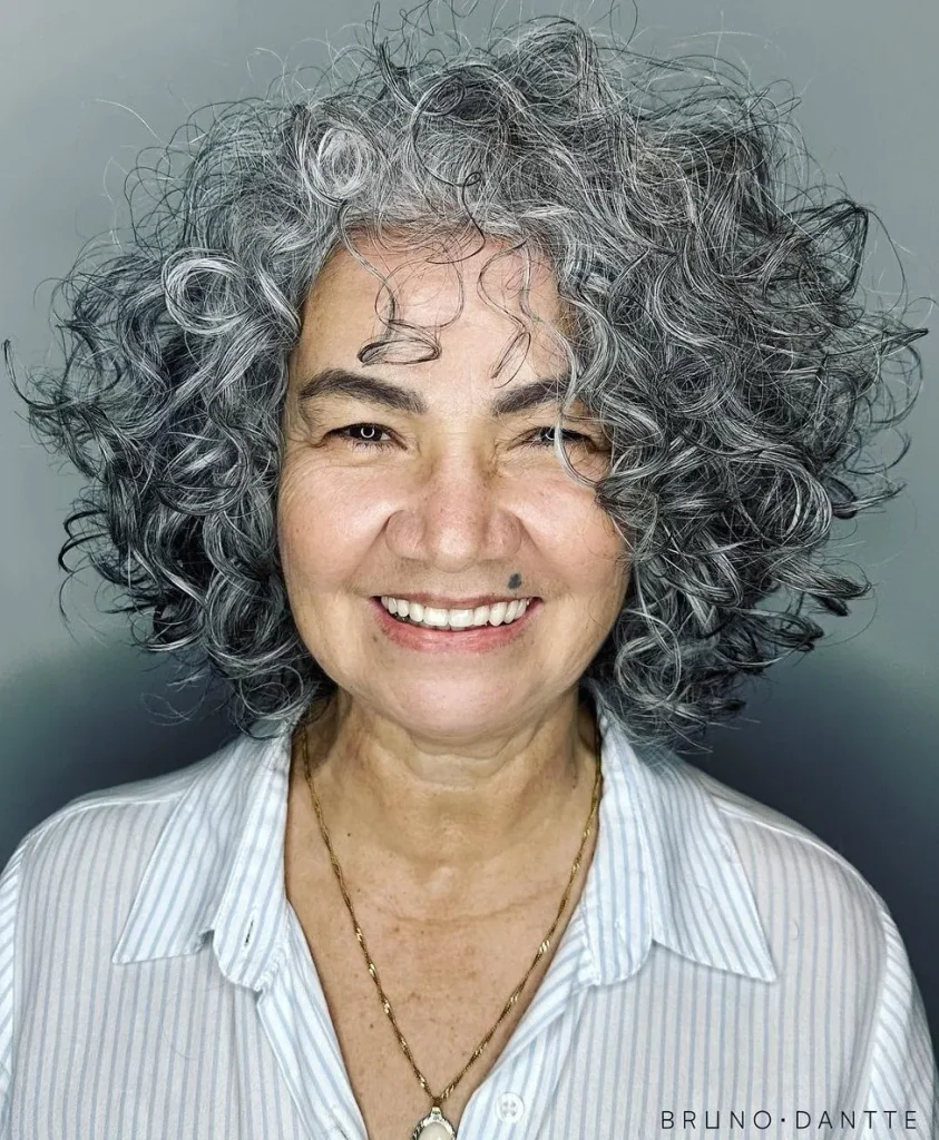 Ce carré bouclé dégradé joue un double rôle : il sublime les boucles et met en valeur toutes les magnifiques nuances de gris. Adoptez cette idée pour rafraîchir votre style et admirer votre reflet dans le miroir.