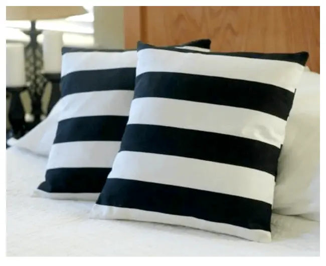 Envie de donner du style à vos coussins ? Lancez-vous avec cette super idée de housse de coussin DIY qui relookera instantanément votre chambre sans vous ruiner. Coudre dans un tissu rayé est un excellent point de départ : ce tissu permet de créer un effet de superposition qui mettra en valeur le point focal de votre pièce.Source :