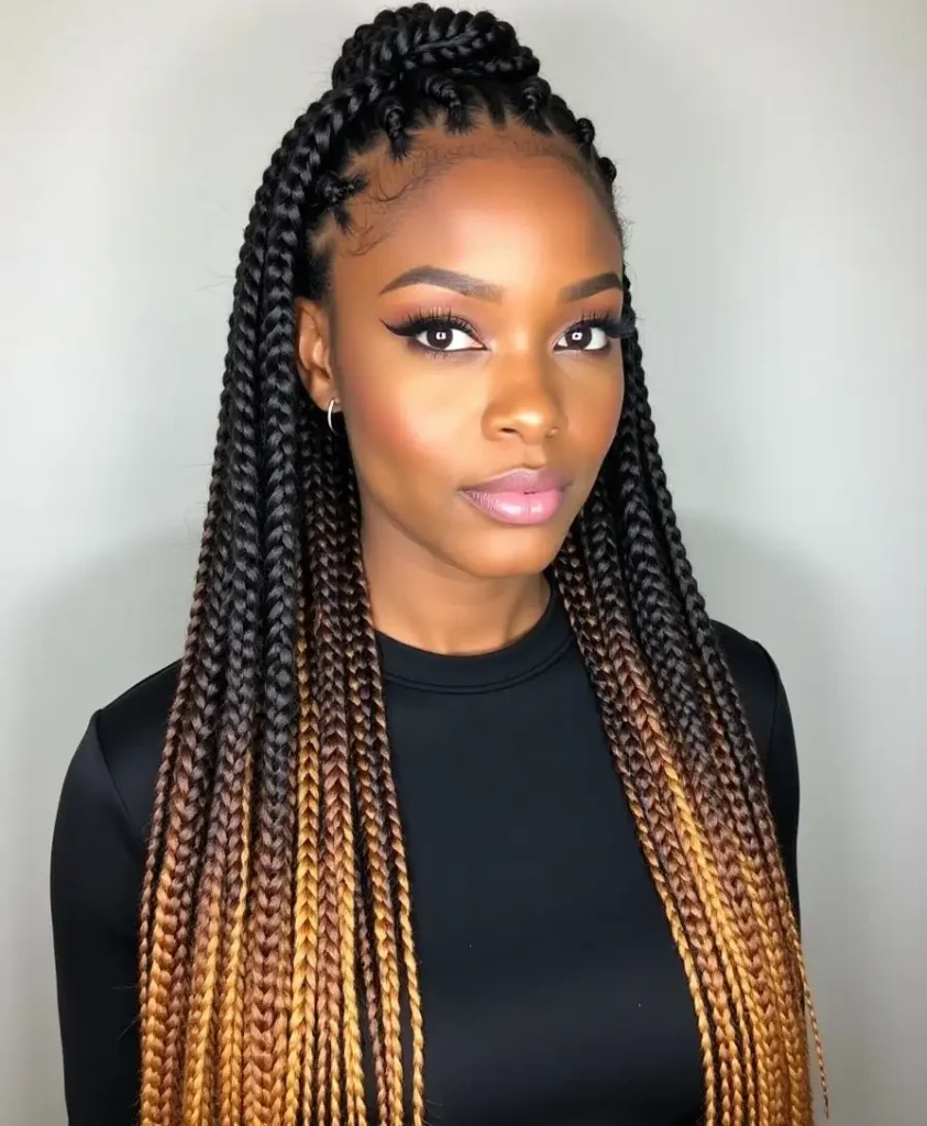 Pourquoi se contenter de l’ordinaire quand une touche de couleur peut instantanément transformer vos tresses africaines en une affirmation audacieuse ?