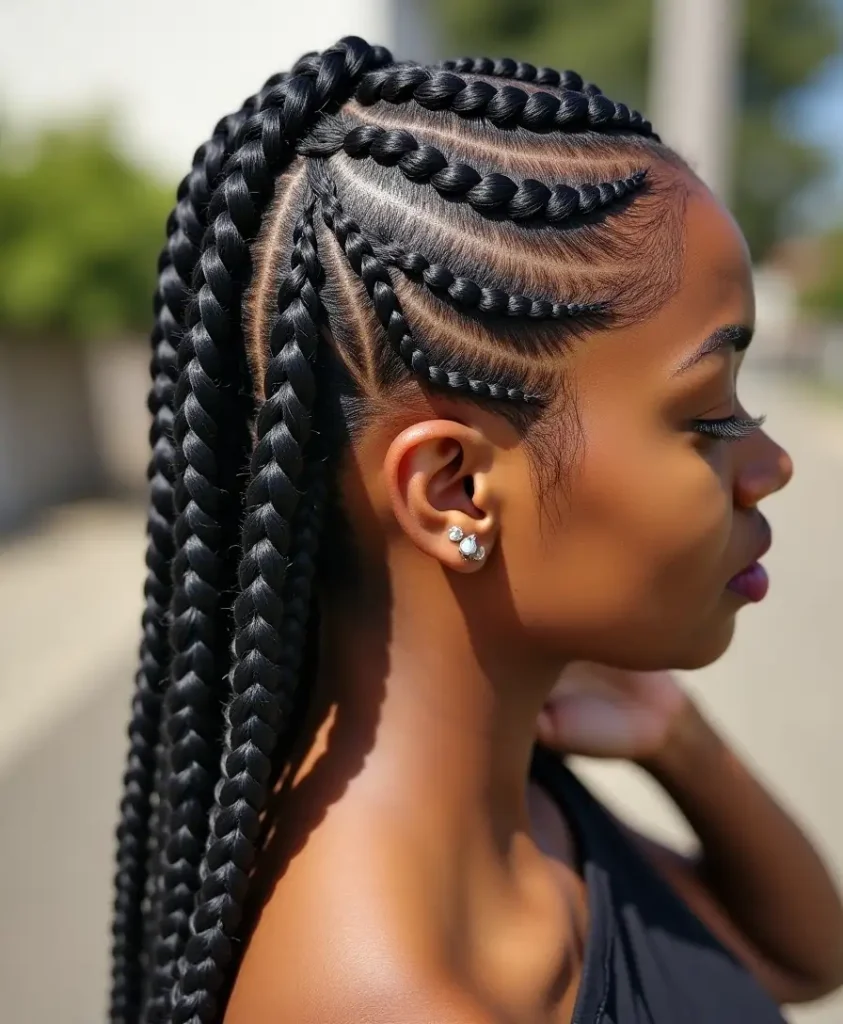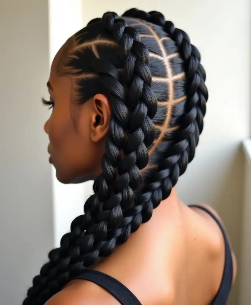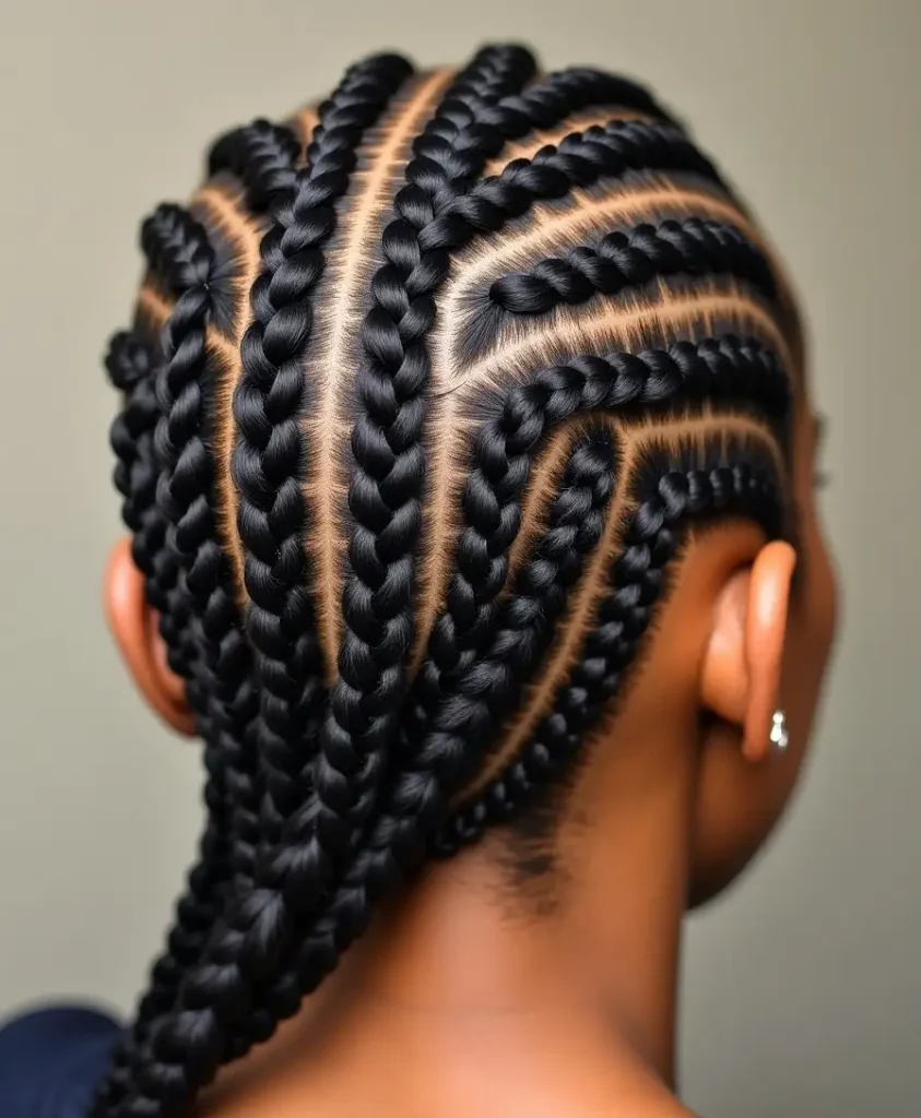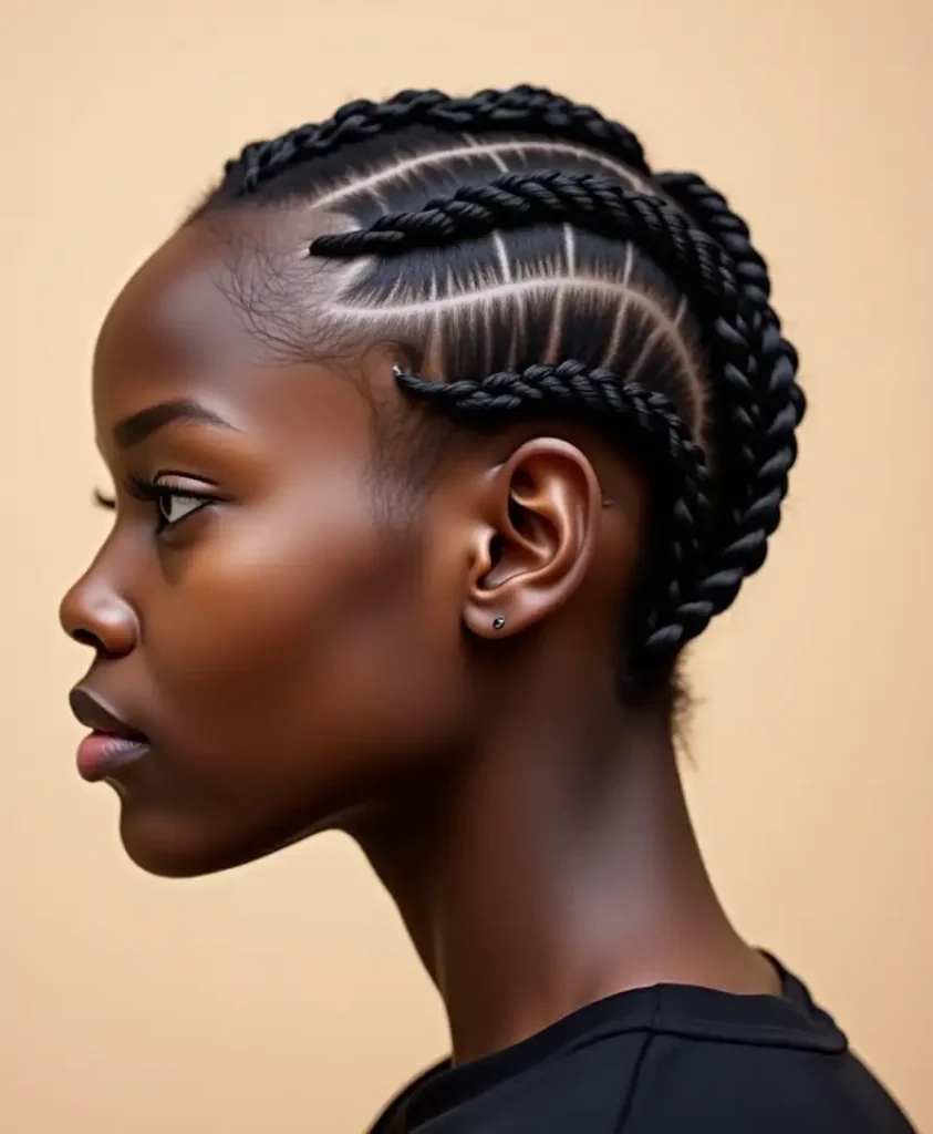 En matière de motifs géométriques audacieux pour les coiffures tressées, la précision et la symétrie sont reines, créant une tapisserie impressionnante sur votre cuir chevelu.