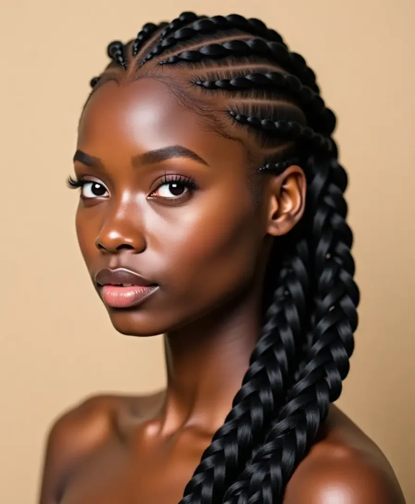 Plongeons-nous dans le charme intemporel des tresses africaines classiques plaquées en arrière , voulez-vous ?