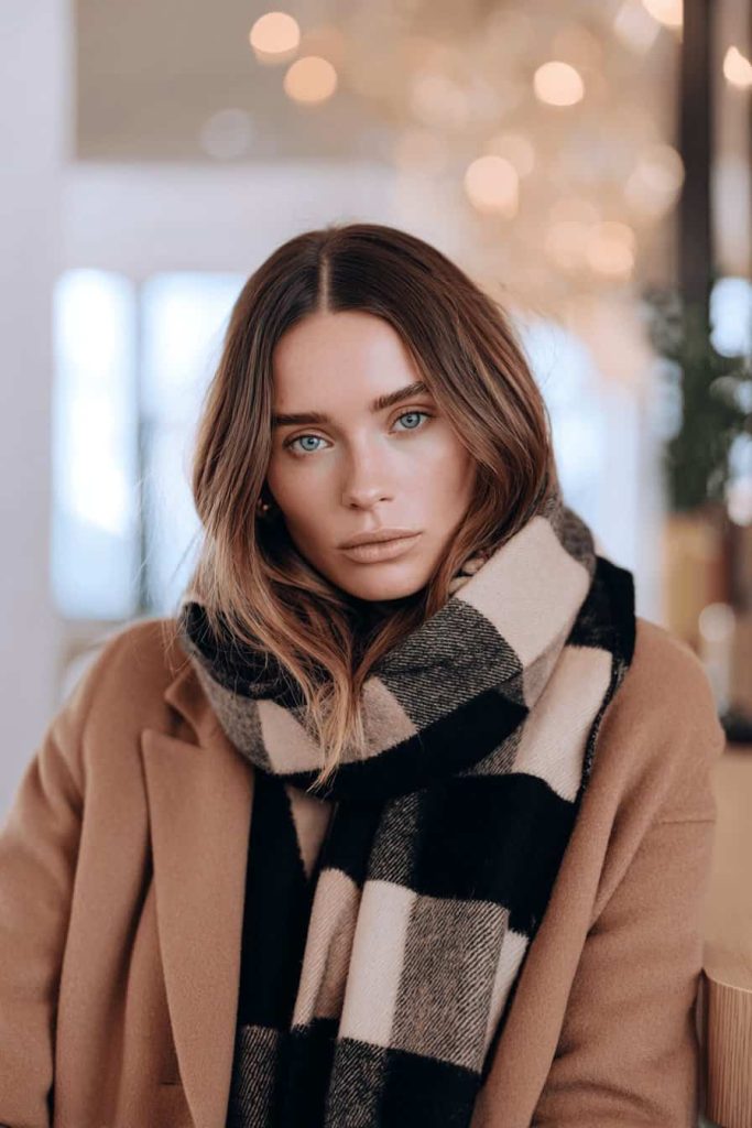 Vous voulez rester au chaud tout en ayant fière allure ? Alors superposer une écharpe à carreaux et un manteau en laine est exactement ce qu’il vous faut : élégant et pratique à la fois.