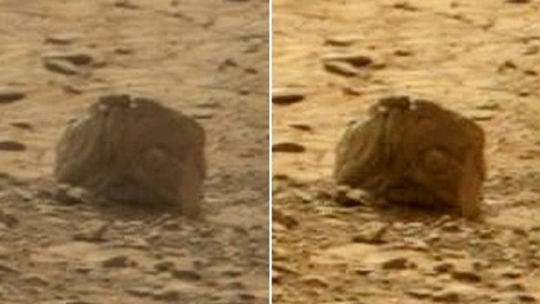 Something very strange has again been found in the image of the surface of Mars taken by the rover Curiosity. Maybe it’s just pareidolia (when natural objects look like certain faces or figures), or maybe it’s a rare remnant of ancient Martian culture.