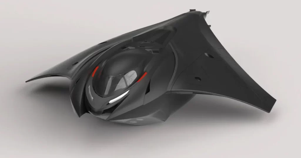 Inspiré des raies manta géantes et de l’aérospatiale, le Kronos, avec sa conception de coque unique, est conçu comme un transport de troupes silencieux et aussi un porte-armes.