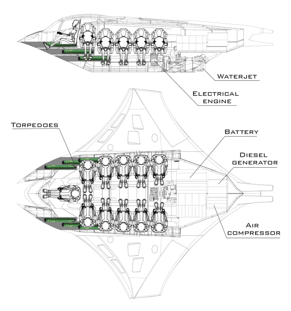 Comme l’a noté la société, le sous-marin Kronos offre des performances élevées, une efficacité exceptionnelle et réduit considérablement les coûts énergétiques lorsqu’il est immergé. Il peut accueillir confortablement 10 passagers et convient aux opérations commerciales, de sauvetage et de combat.