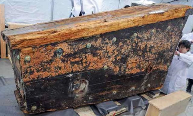 Le bois a été utilisé pour construire le cercueil. Un grand nombre de poteries et de bijoux ont été trouvés dans la tombe.