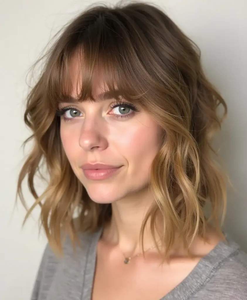 Avec des ondulations légères, les cheveux mi-longs prennent vie. Cette coiffure apporte douceur, féminité et une touche bohème. Elle convient particulièrement à celles qui souhaitent dynamiser leur chevelure sans utiliser trop de produits ou de chaleur. Un spray salin ou une simple tresse pour dormir suffisent souvent à créer ce look.