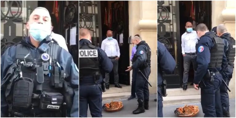 La vidéo de certains policiers français exprimant leur confusion alors qu’ils trouvent une calebasse de sacrifice devant l’ambassade du Nigéria à Paris.
