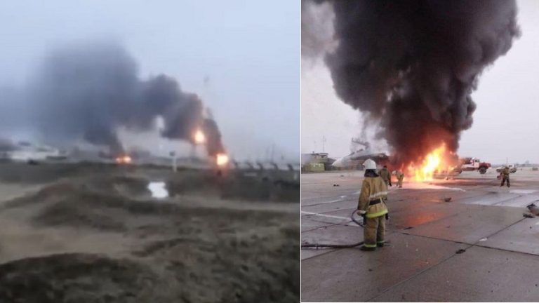 Selon plusieurs photographies, cette base aérienne, qui abrite le 31e Régiment de chasse des forces aérospatiales russes, était la proie des flammes au matin de ce 25 février. Des avions de combat Su-30 ont apparemment été endommagés, voire détruits. Selon plusieurs sources, les forces ukrainiennes auraient tiré des missiles balistiques Toshka-U [code Otan : SS-21 Scarab], d’une portée maximale pouvant atteindre 185 km. Ces engins avaient été acquis durant la période soviétique. Il est possible aussi que cette base ait été visé par des drones Bayraktar TB-2, livrés par la Turquie.