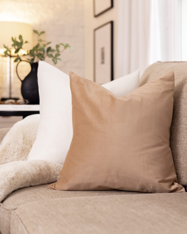 Vous avez peut-être entendu dire qu’il faut toujours utiliser des housses de coussin d’une taille inférieure à celle des coussins de garnissage. Autrement dit, il faudrait utiliser un coussin de 56 cm (22 pouces) pour une housse de coussin décoratif de 51 cm (20 pouces) de diamètre. Après avoir géré notre entreprise de photographie d’intérieur pendant plusieurs années et pris d’innombrables photos de pièces remplies de coussins de toutes formes, tailles et qualités, je ne suis pas d’accord.