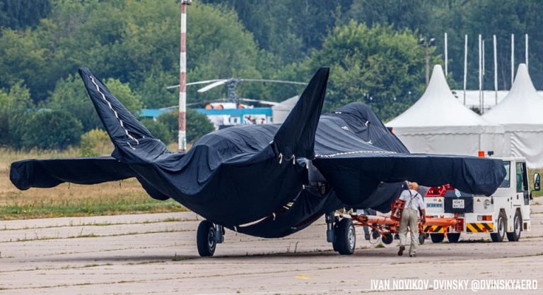 Effectivement. Le 15 juillet, plusieurs photographies d’un appareil de type nouveau ont été diffusées via les réseaux sociaux russophones. Même s’il est recouvert par une bâche, on devine qu’il s’agit bien de celui dont il est question depuis plusieurs mois, ses formes étant caractéristiques de celles d’un avion de 5e génération.