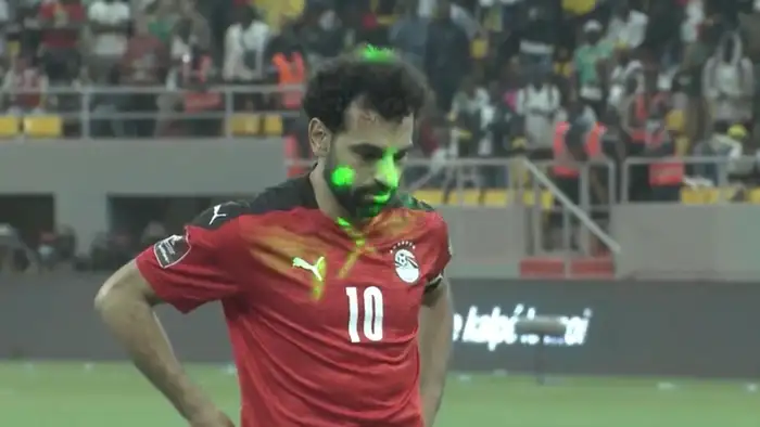 La superstar de Liverpool, Mohamed Salah, avait plusieurs lasers dirigés vers son visage alors qu’il se préparait à passer de 12 mètres – ses efforts finissant par passer au-dessus de la barre transversale – tandis que le bus de l’équipe égyptienne était attaqué avant le match et que des banderoles racistes étaient affichées à l’intérieur et à l’extérieur du stade.
