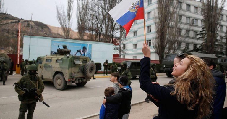 Les habitants de Melitopol ont accueilli les troupes russes qui se déplaçaient dans la ville. Certains citoyens âgés sont descendus dans la rue [agitant] des drapeaux rouges”, a déclaré le ministère de la Défense.