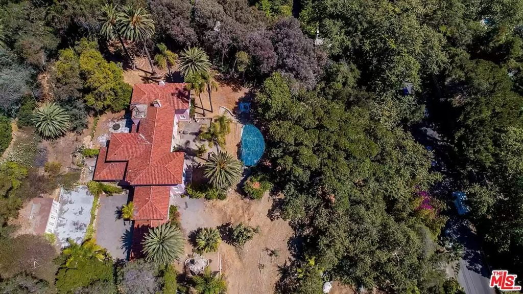 Les photos de l’intérieur de la propriété sont rares en raison de son état détérioré. Mais il semble que plusieurs palmiers continuent de survivre, et la piscine et le spa semblent bien entretenus.
