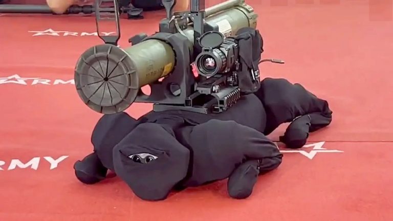 Un chien robot déguisé en ninja avec un lance-roquettes sur le dos a été exposé en Russie lors d’un événement parrainé par le ministère de la Défense du pays.