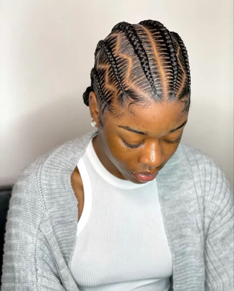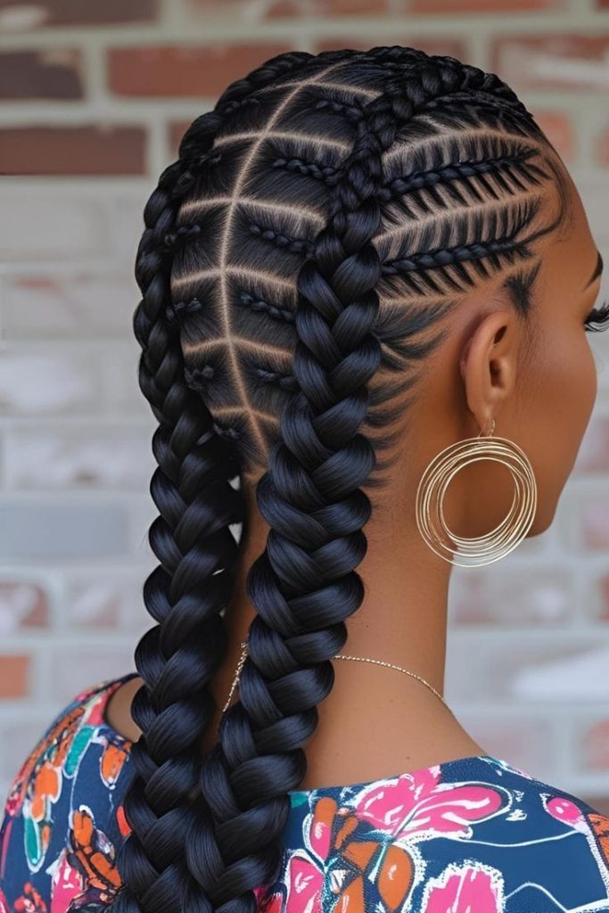 Un style hybride qui combine des tresses collées à l’avant et des mèches lâchées à l’arrière. C’est original, moderne et pratique pour changer de look sans refaire toute la coiffure.