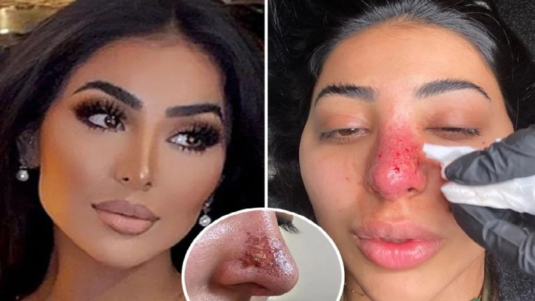 Le nez d’Aneesa Sharif Saddique est devenu noir et suintait de pus après avoir été privé d’oxygène, car le produit de remplissage avait bloqué l’approvisionnement en sang. Après que la nécrose (mort des cellules et des tissus) s’est installée, l’éminente mannequin anglo-pakistanaise de 30 ans avait besoin d’un traitement d’urgence et était à quelques heures de se faire enlever le nez chirurgicalement.