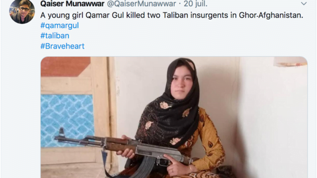 Sur les réseaux sociaux, une photo de Qamar Gul, une mitraillette à la main, est largement partagée depuis. Plusieurs internautes la qualifient d’«héroïne», saluant son geste et son «courage»