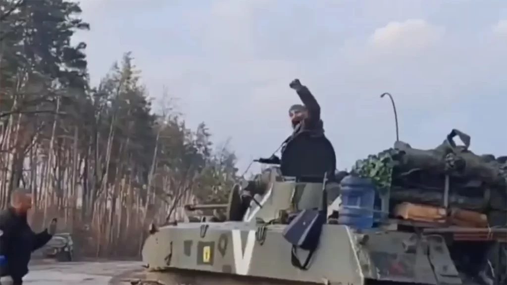 L’unité ukrainienne n’est pas identifiée dans la vidéo, mais la scène représentée et les soldats ukrainiens vus dans les images semblent identiques à ceux d’une vidéo publiée le 30 mars.